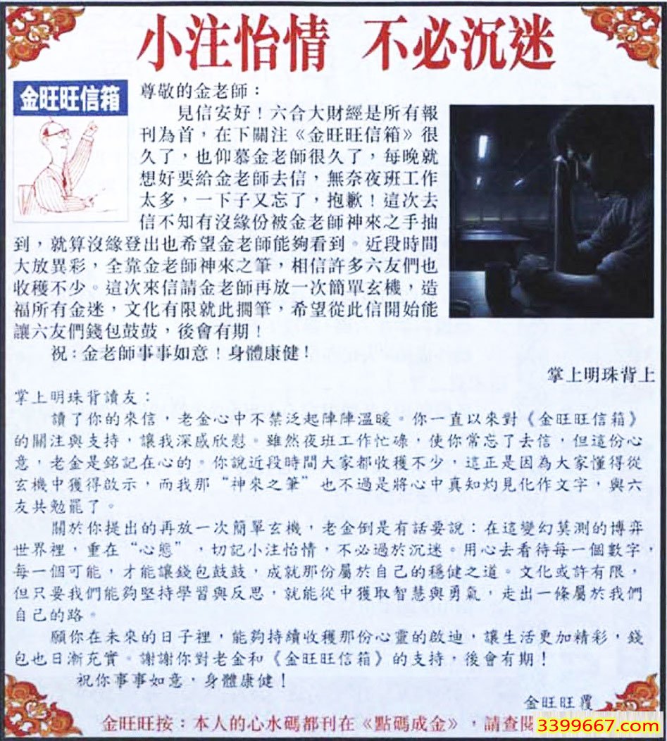 主题 :075期:金旺旺信箱彩民推荐→→《小注怡情 不必沉迷》 |