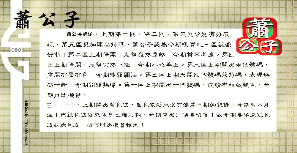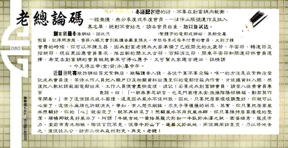 主题 :080期:六合皇金句/老总论码/萧公子/林大师/五行夺码/老总信箱截 |