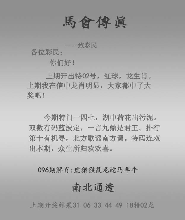 主题 :096期:正马会传真 |