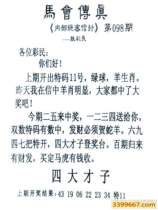 主题 :098期:首发推荐:≮馬會傳眞≯→(香港正版) |