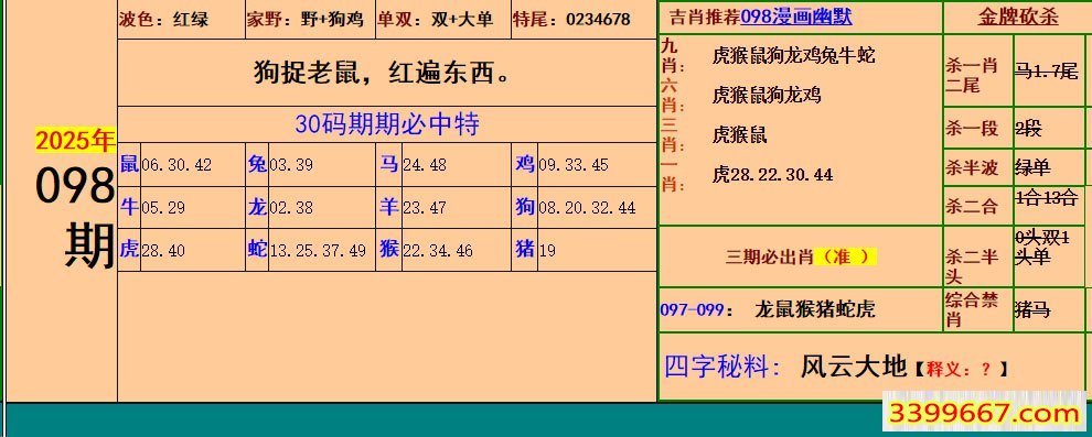 主题 :098期:小鱼儿30码期期中+幽默猜测 |