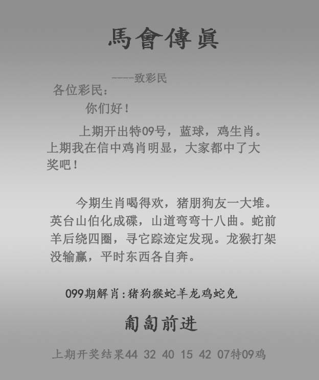 主题 :099期:正马会传真 |