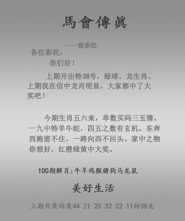 主题 :100期:正马会传真 |