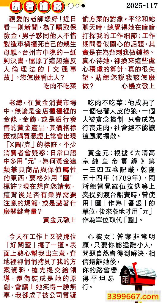 | 主题 :117期:彩民推荐〖貼信讀者論壇〗 |
