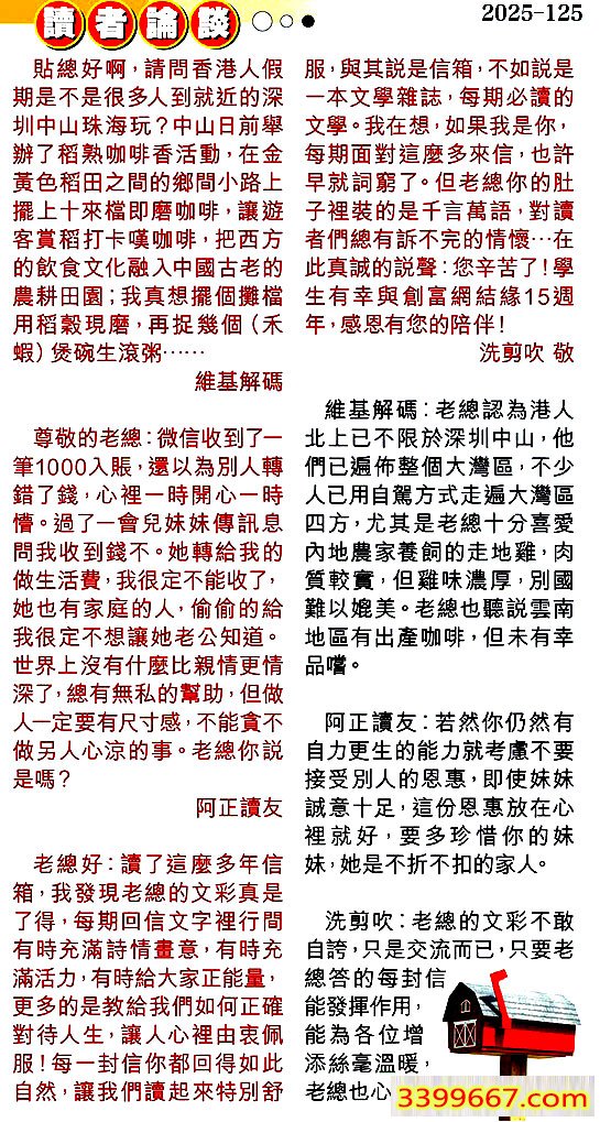 | 主题 :125期:彩民推荐〖貼信讀者論壇〗 |