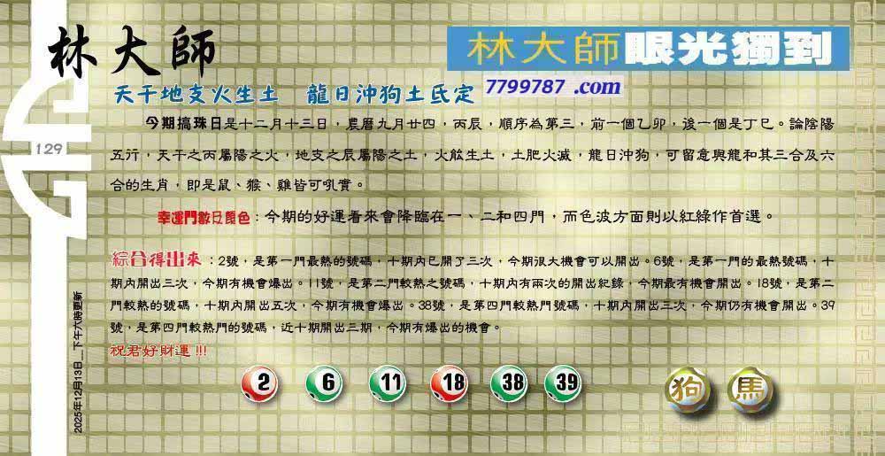 | 主题 :129期:六合皇金句/老总论码/萧公子/林大师/五行夺码/老总信箱截 |