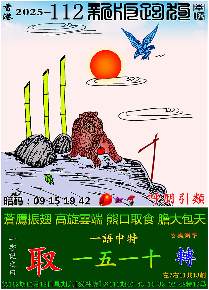 主题 :112期:新版跑狗一字記之曰【取】 玄機測字:【轉】