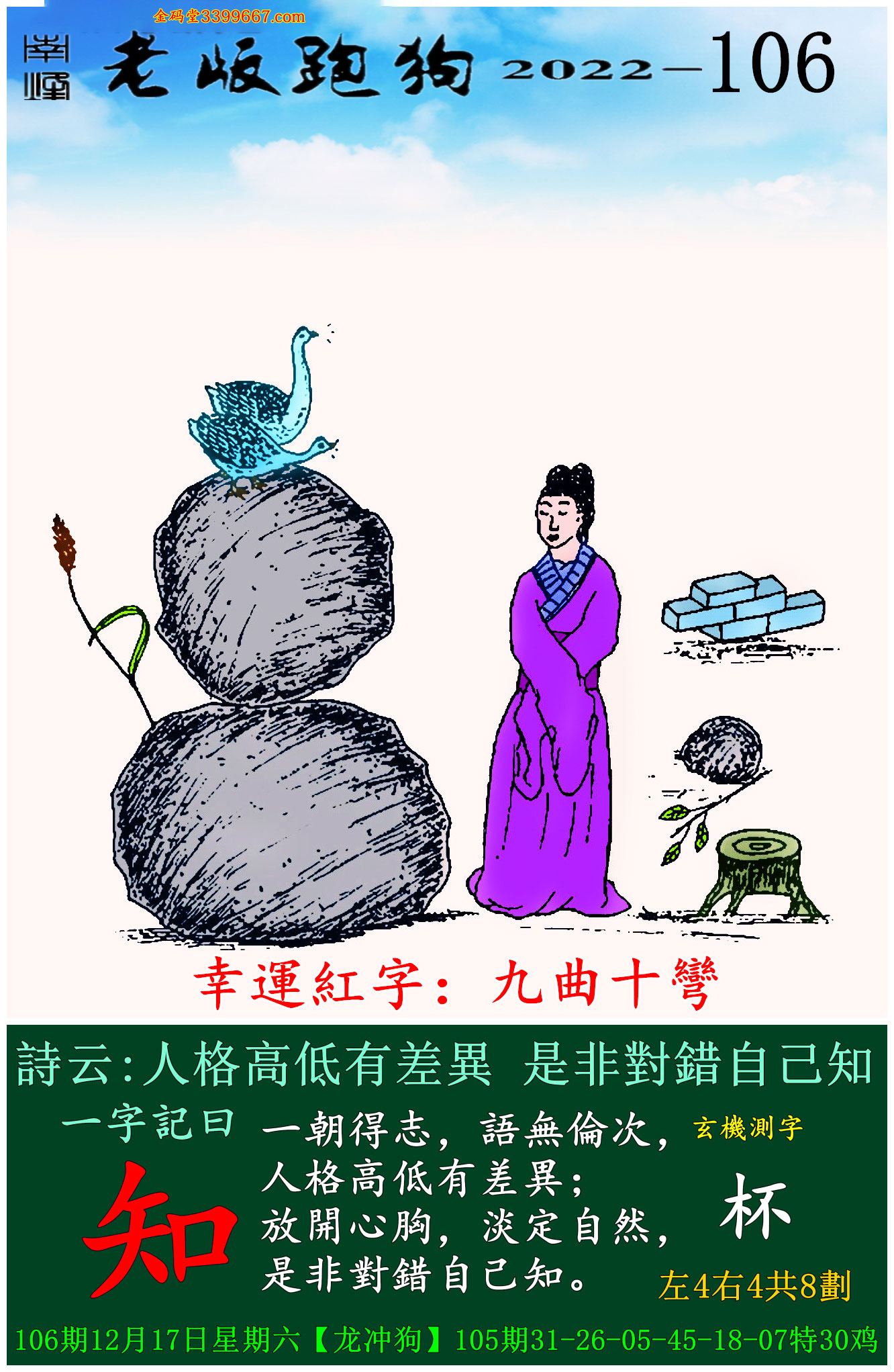 | 主题 :106期老版跑狗一字記之曰:【知】玄機測字:《杯》 |