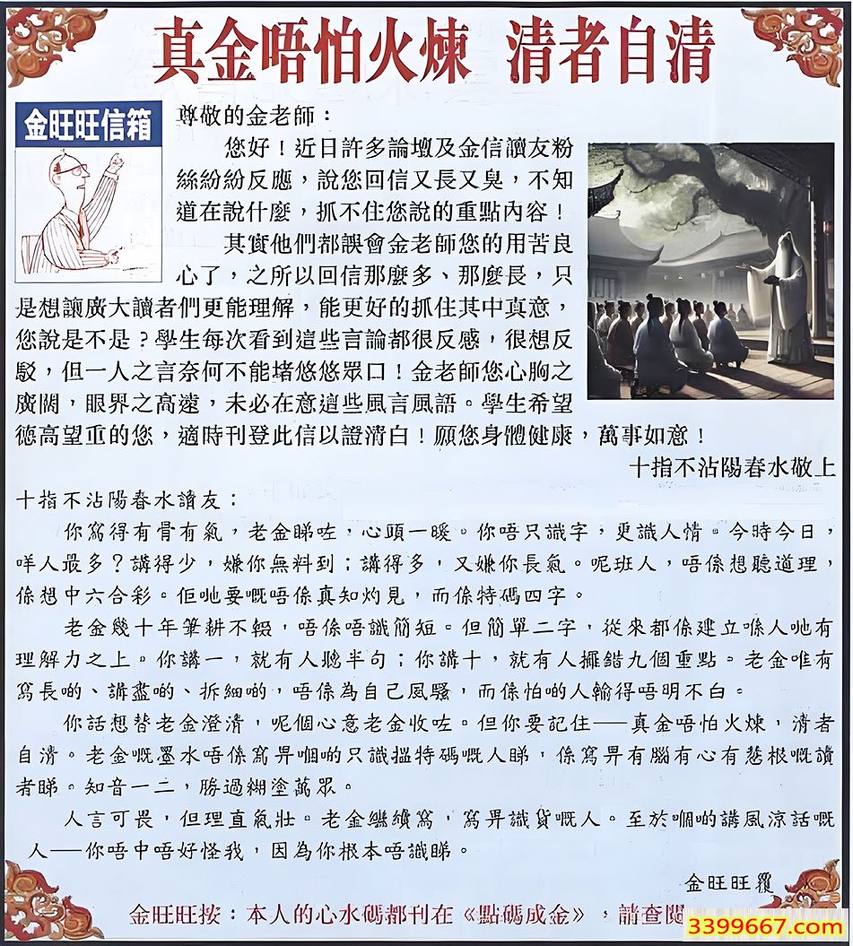 | 主题 :086期:金旺旺信箱彩民推荐→→《真金唔怕火煉 清者自清》 |