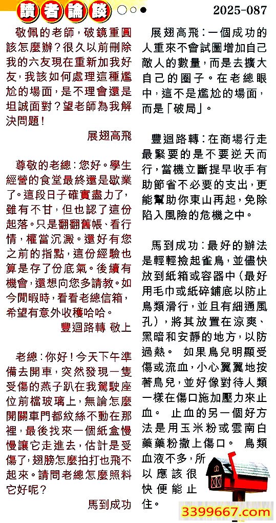 | 主题 :087期:彩民推荐〖貼信讀者論壇〗 |