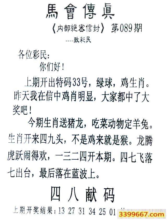 | 主题 :089期:首发推荐:≮馬會傳眞≯→(香港正版) |