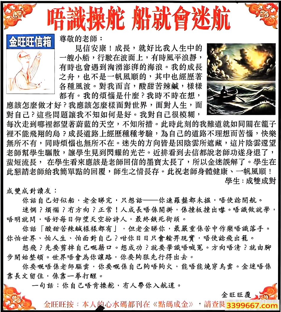 | 主题 :090期:金旺旺信箱彩民推荐→→《唔識操舵 就會迷航》 |