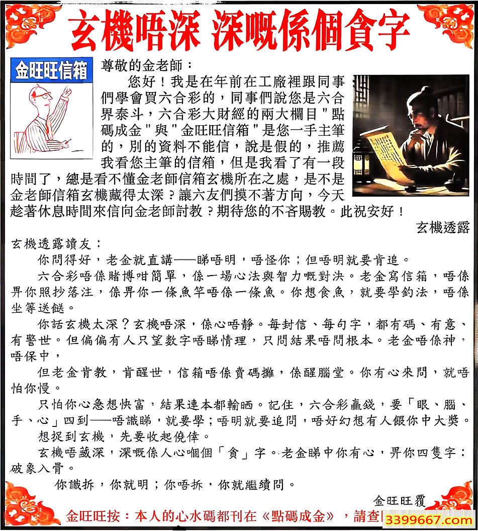 | 主题 :092期:金旺旺信箱彩民推荐→→《玄機唔深 深嘅係個貪字》 |