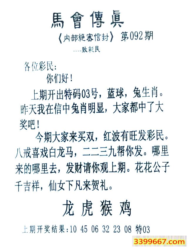 | 主题 :092期:首发推荐:≮馬會傳眞≯→(香港正版) |