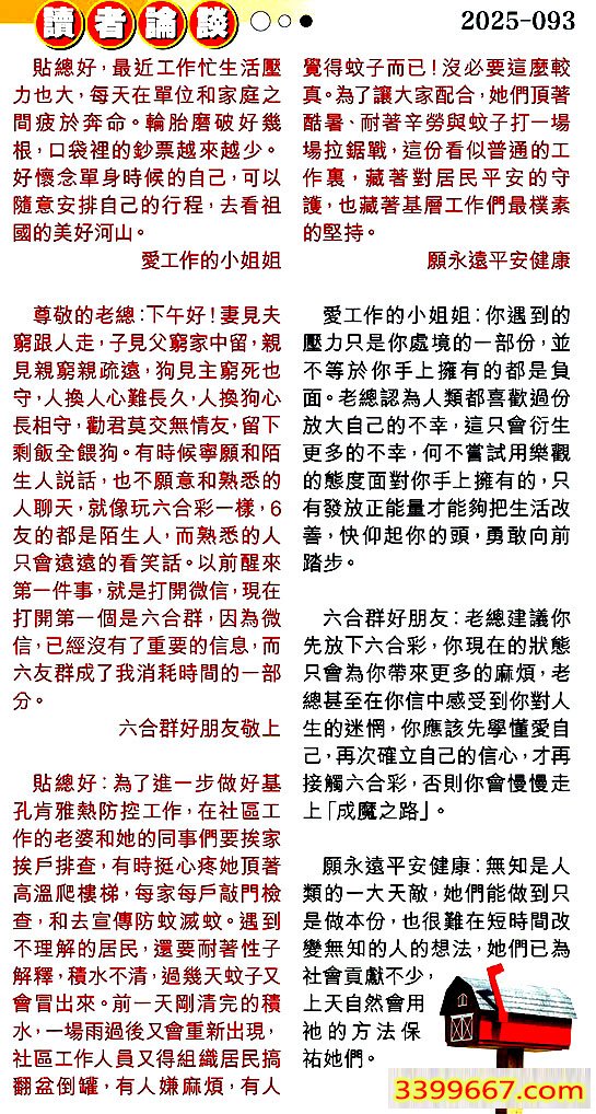 | 主题 :093期:彩民推荐〖貼信讀者論壇〗 |
