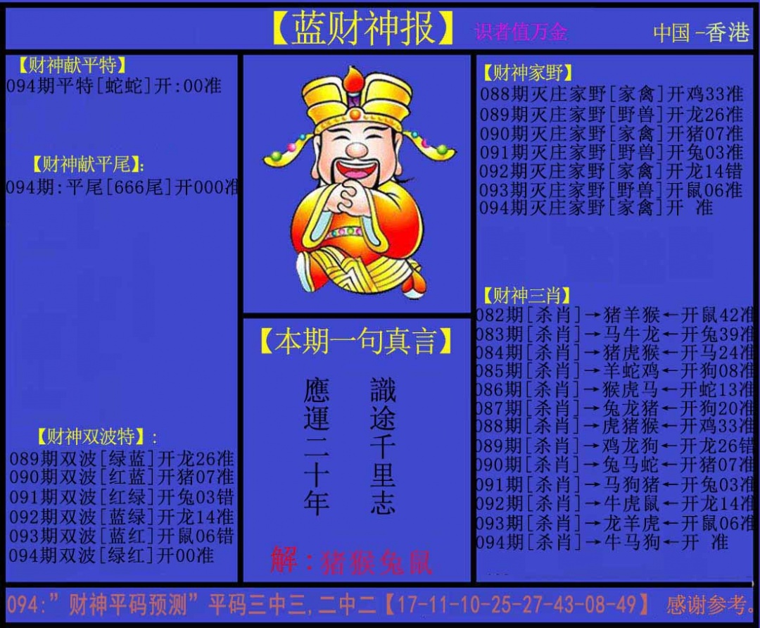 | 主题 :094期:蓝财神 |