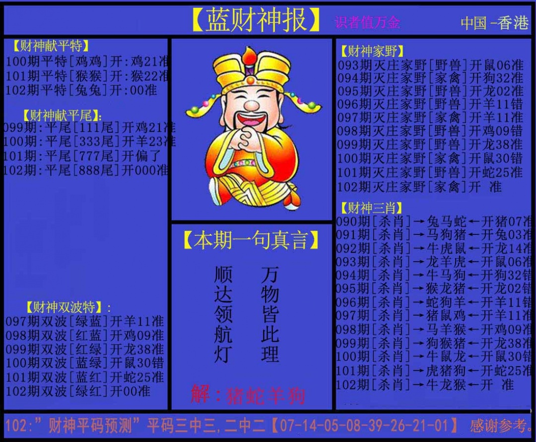 | 主题 :102期:蓝财神 |