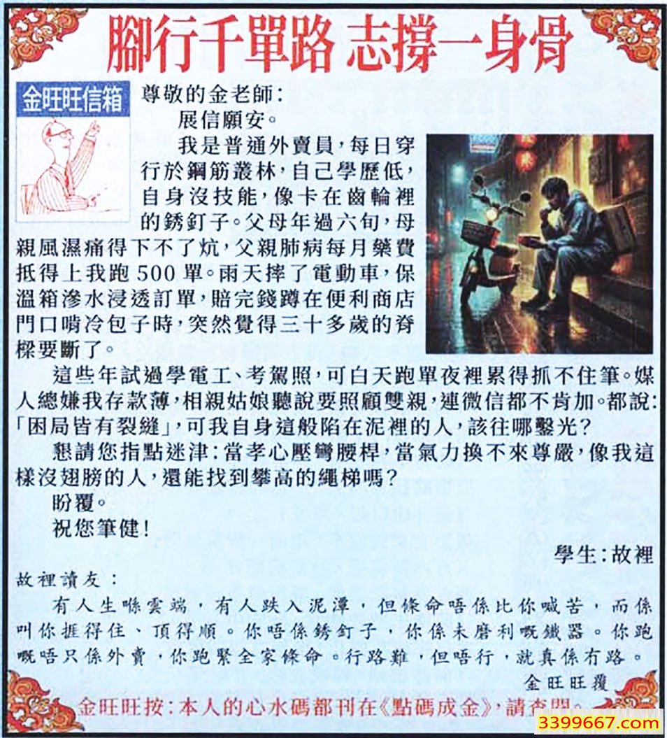 | 主题 :013期:金旺旺信箱彩民推荐→→《腳行千單路 志撐一身骨》 |