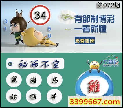 072期正版彩图挂:34 爆:鸡 挂牌成语:秘而不宣 挂牌出肖:鼠鸡马蛇猴羊