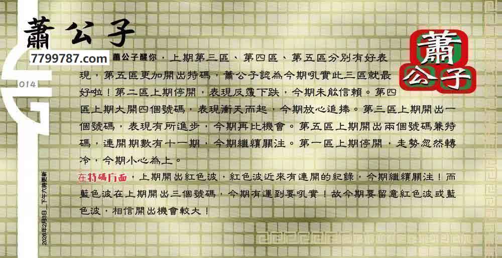 | 主题 :014期:六合皇金句/老总论码/萧公子/林大师/五行夺码/老总信箱截 |
