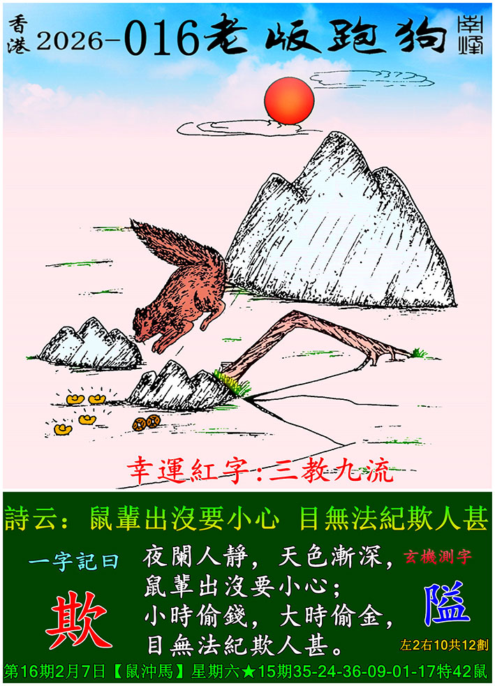 主题 :016期老版跑狗一字記之曰:【欺】 玄機測字:《隘》