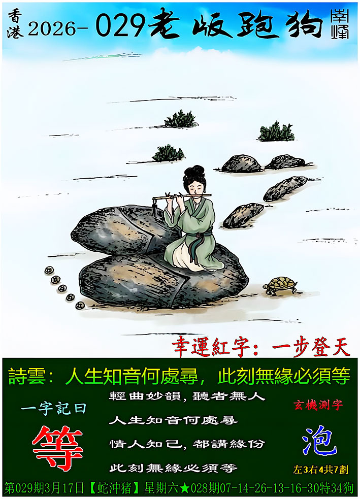 主题 : 029期老版跑狗一字記之曰:【等】玄機測字:《泡》