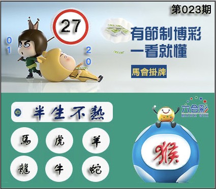 023期正版彩图挂:27 爆:猴 挂牌成语:半生不熟 挂牌出肖:马虎羊龙牛蛇